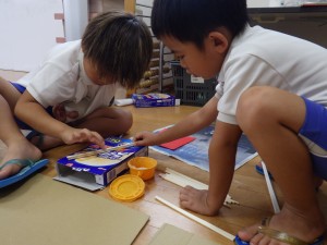 作り方や材料も自分たちで考えていきます。どんな作品ができるかなー?