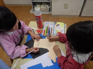 みんなで相談して、1つの大きな作品を作ってみることになりました。「こうしたら上手に切れるで」「こっちはどう?」「それいいやん!」あちこちで、相談しながら作る姿が見られます。どんな作品になるのかな…?