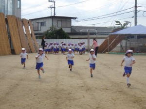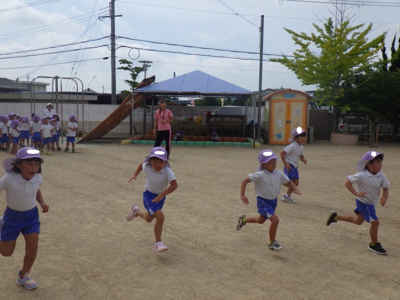 腕を振って、前を見て…少しずつ走る形がかっこよくなってきました☆次で最後にしようねーと伝えると、「えー!?まだ走れる」「もっとしたい」と、元気いっぱいのばら組です。