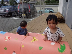 元気いっぱいのちゅーりっぷ組さん。少しの時間を見つけて、テラスでかけっこです☆