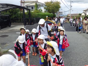 「よいやさー」の威勢のいい声で、おみこしをひっぱりました。