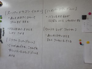 「最後まであきらめずに走れる人を後にしよう」「よーいドンで、すぐに走れる人が最初に走るのは?」各チーム、いろいろな観点で速く走れるように作戦を考えています☆