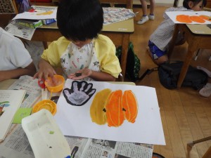 かぼちゃのおばけ、作ってみる?とかぼちゃの絵画が始まりました。