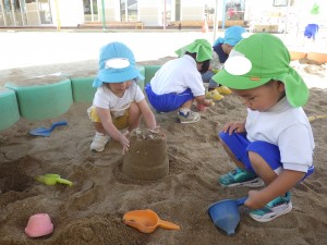 遊びの途中でも、先生たちのお話を聞いて頭を守ることができました。自分の命を守る心が育ってきています☆
